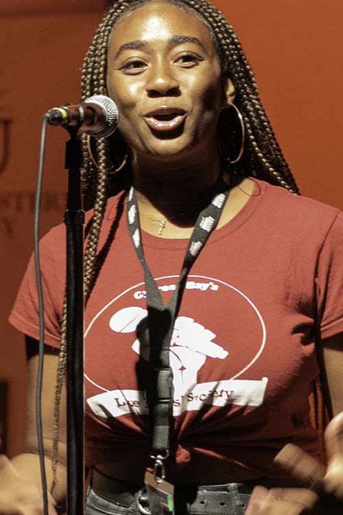 As a member of Cypress Bay High School’s bluapple poetry club, Nyah participated in Louder Than a Bomb Florida for three years, reaching the Individual Finals each year, and helping her team reach the LTABFLA Team Finals once. She also was a two-time winner of the WordUp! Poetry Slam, and was a member of bluapple’s CORE, a leadership group of high school poets. More recently, she has worked with the Jason Taylor Foundation to help write three tribute poems honoring Jason Taylor Community Hall of Fame members.